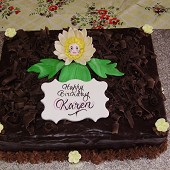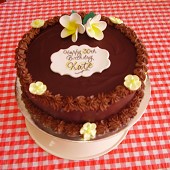 Chocolate ganache is a very popular finish for cakes but limits the type of decoration that can be added. Any flavour cake can be chosen.